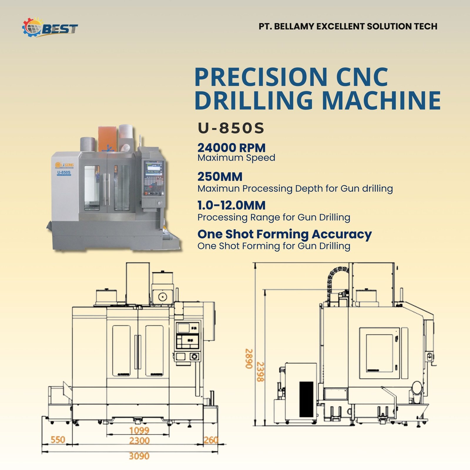 Li GONG U-850S is a precision CNC drilling machine designed for stable and accurate industrial machining. Its rigid structure reduces vibration and ensures consistent drilling performance.