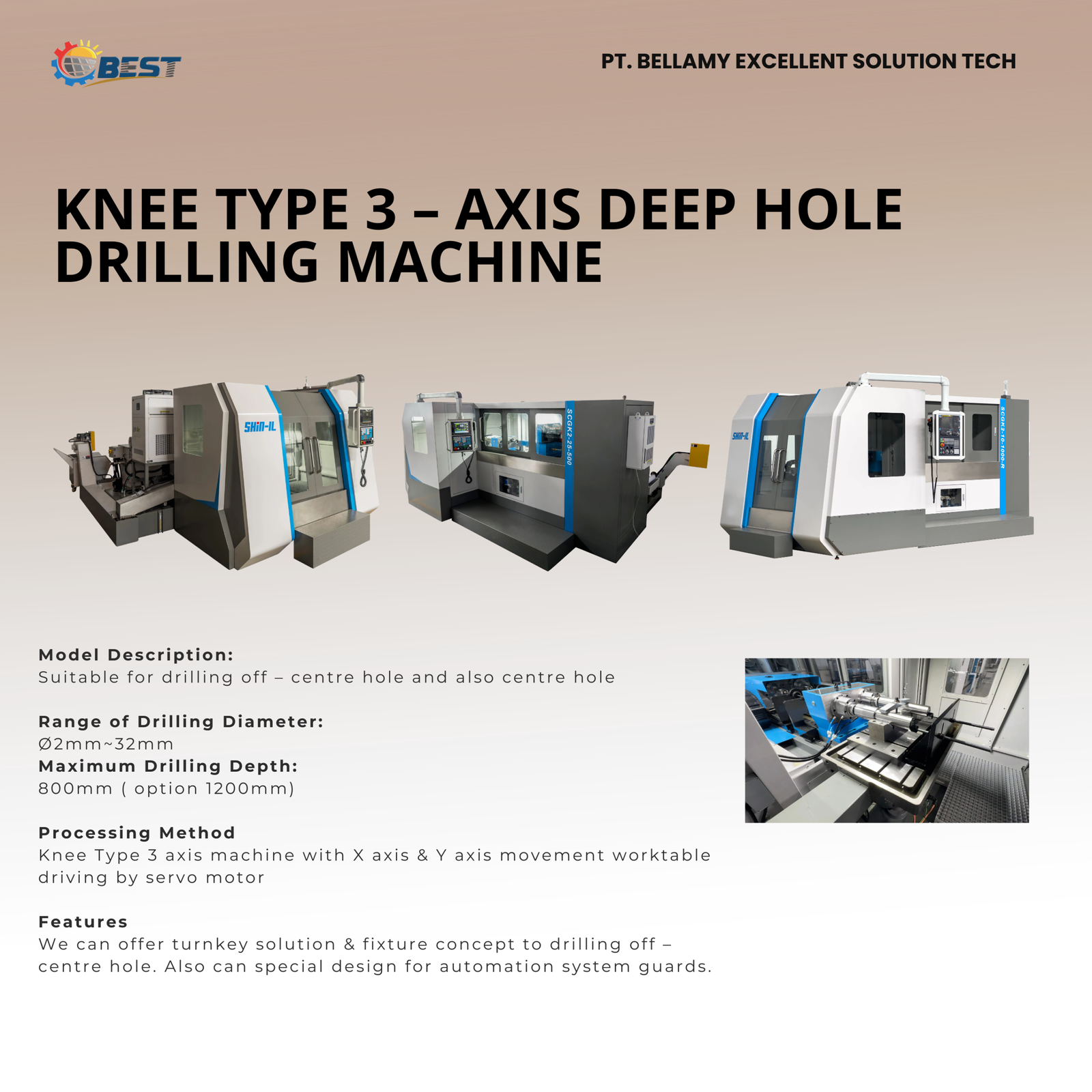 Knee Type 3-Axis Deep Hole Drilling Machine is a precision solution for complex deep hole drilling. It is designed for applications that require accurate multi-axis control.